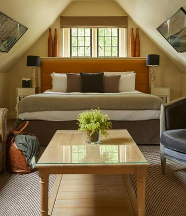 This retreat-style accommodation offers a more independent feel, ideal for travelers who want privacy while still being immersed in the countryside. Interiors lean modern, while the surroundings remain unmistakably Cotswolds.
