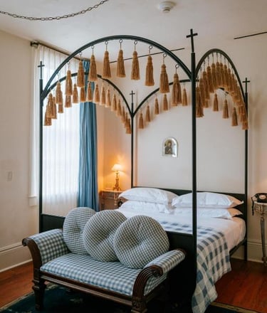 One of New Orleans’ most unique stays, Hotel Peter & Paul occupies a restored church complex in the Marigny. Rooms are spread across former schoolhouses, rectories, and convent spaces — each thoughtfully designed and deeply atmospheric.